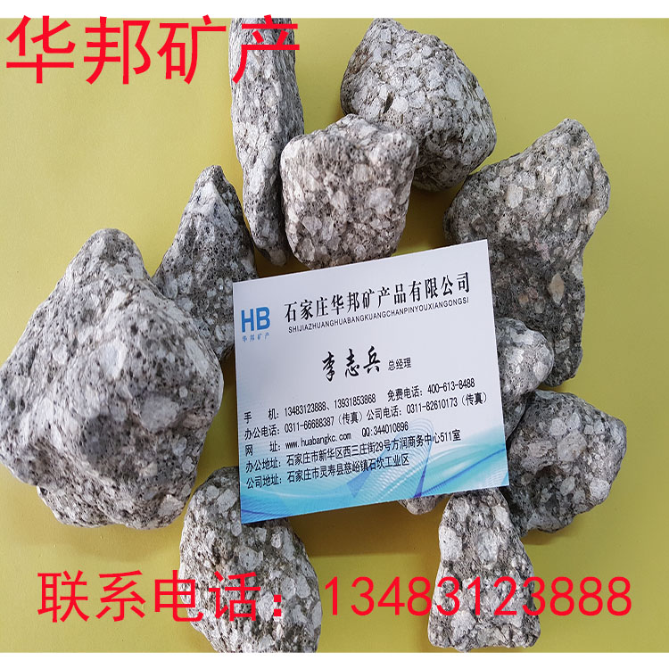 石家莊華邦礦產(chǎn)品有限公司是集生產(chǎn)、加工、銷(xiāo)售于一體的建材企業(yè),公司位于河北省靈壽縣慈峪鎮(zhèn)石坎工業(yè)區(qū),距河北省會(huì)石家莊50公里,距首都北京260公里,交通、通訊便利,礦產(chǎn)資源豐富,我公司分建加工、包裝、倉(cāng)儲(chǔ)等車(chē)間,并擁有現(xiàn)代化的生產(chǎn)和化驗(yàn)檢測(cè)設(shè)備。我公司充分利用當(dāng)?shù)氐牡乩韮?yōu)勢(shì)和資源優(yōu)勢(shì),并引進(jìn)現(xiàn)代先進(jìn)的生產(chǎn)工藝,并聘請(qǐng)行業(yè)的專(zhuān)家實(shí)行科學(xué)管理,建立了多層管理體系,對(duì)產(chǎn)品質(zhì)量嚴(yán)格把關(guān),絕對(duì)保證交貨期和發(fā)貨相關(guān)服務(wù)。我們現(xiàn)已和多家國(guó)內(nèi)外生產(chǎn)單位、貿(mào)易單位建立了長(zhǎng)期的合作關(guān)系。